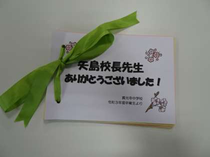 3年生から、写真のような素敵なメッセージ集をいただきました。