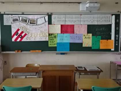(2組のクラス目標の最後の写真は、卒業式の写真が入るのでしょう)