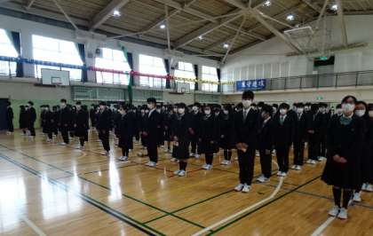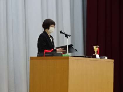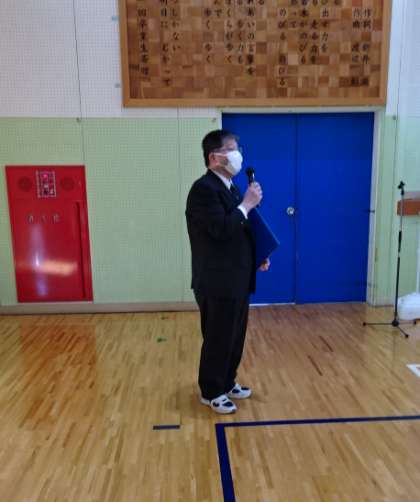 写真下:校長の話(内容は学校だよりのコーナーにアップしてあります)