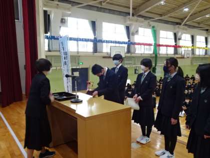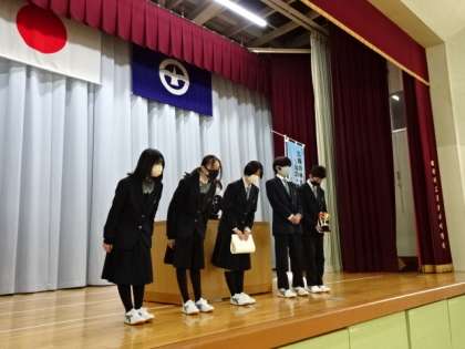 代表として、1年生の国語係が賞状とトロヒィーを受け取りました。