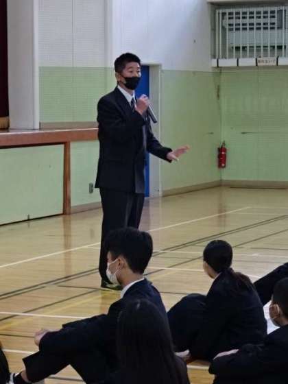 生活指導主任の先生から、1年間の振り返りと春休みの過ごし方についてお話がありました。