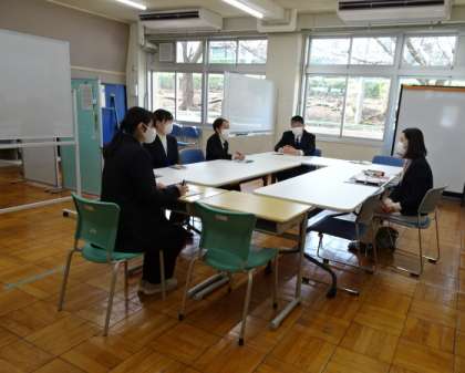 サポートルームの先生、コーディネーターの先生、養護の先生、専門員の先生と一緒に臨床心理士の先生から1年間の振り返りと来年度に向けての話し合いを行いました。