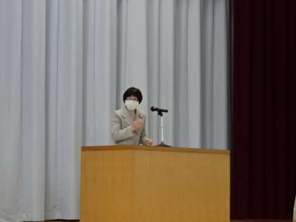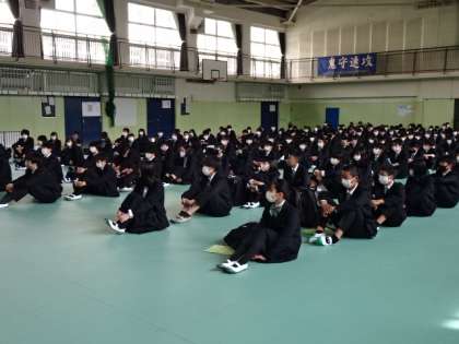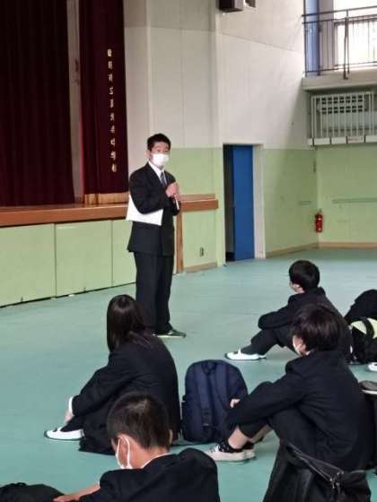 写真下:生活指導主任の先生から