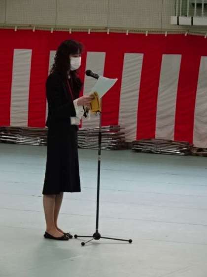 写真上:「保護者と教職員の会」の会長から活動についての説明