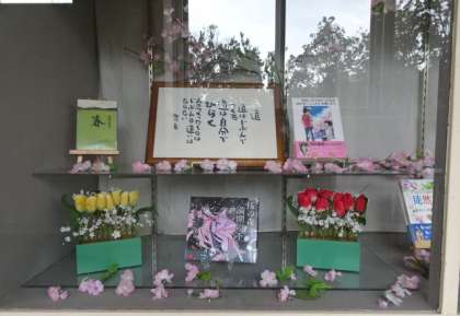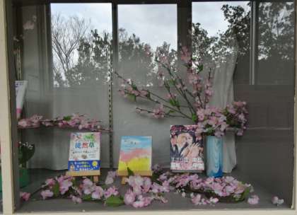 図書室の飾り棚も「進学・進級」をお祝いしてくれています。