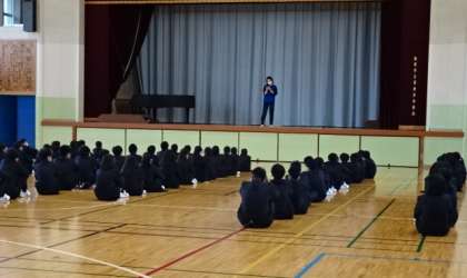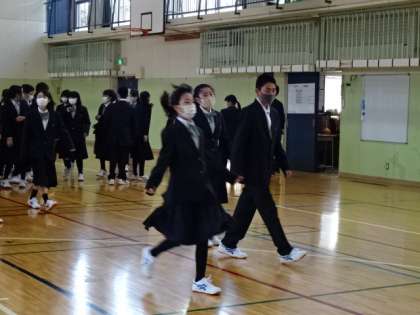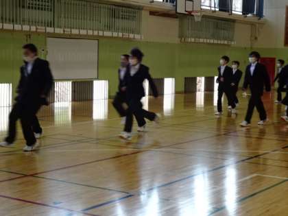 1年生は体育館で、集団行動(整列の仕方、挨拶の仕方等)の練習をしていました。