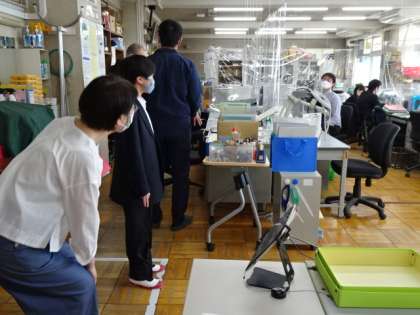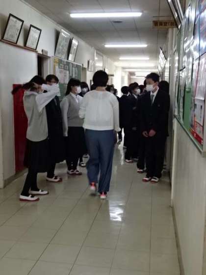 職員室の前に来ると、「職員室の入室の仕方」を実際に代表者が体験しました。