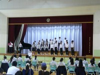 吹奏楽部の演奏で、校旗を先頭に入場します。