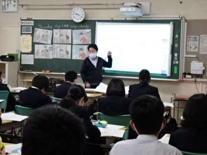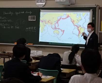 写真下:2年3組 社会「日本の地形の特徴を知ろう」