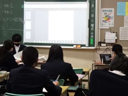 写真下:3年3組 社会「江戸 関ケ原の戦い」