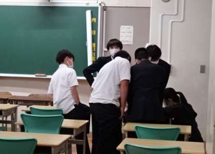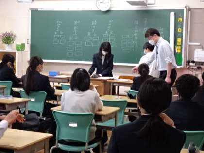 写真下は、保健体育の先生からアドバイスをもらっているところです。