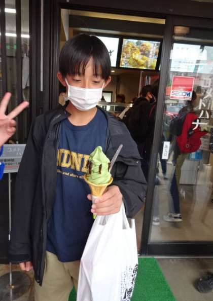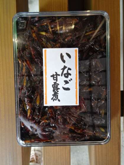 写真上:「いなごの佃煮」をお土産に買った人もいます。