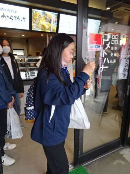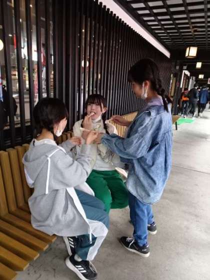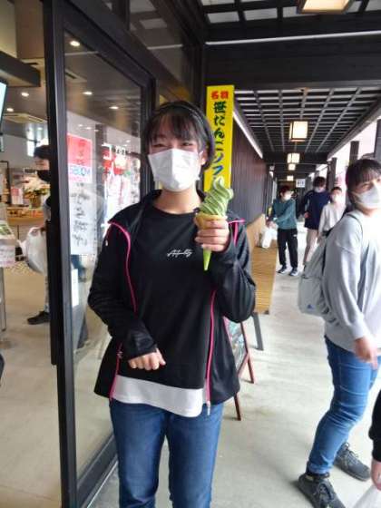 写真下:この3人が食べているアイスは、「あぜ道ソフト」ではなく、隣のお土産屋さん「NATURA」で販売してるソフトクリームです。