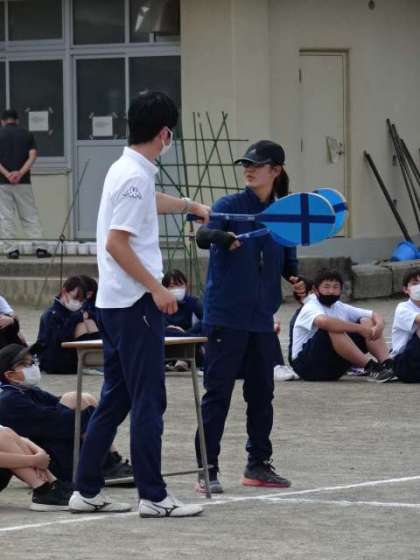 学年種目「ラケットリレー」を初めて挑戦しました。