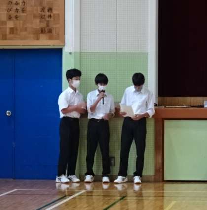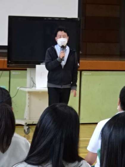 5・6校時 体育館で5月に実施した「農村体験移動教室」の発表会を行いました。