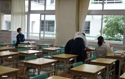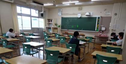 7時50分 3年生の教室では、教えあっている風景に会いました。
