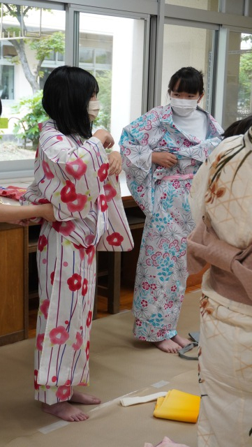 ゆかたも帯もすべて、地域の方から貸していただきました。