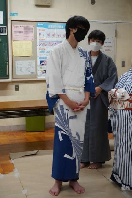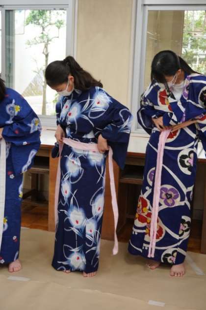 ゆかたも帯もすべて、地域の方から貸していただきました。