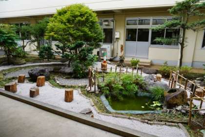 撮影場所を中庭の、日本庭園の前にしました。