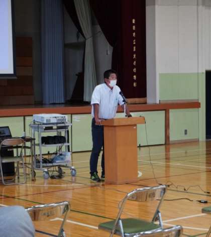 3年生は令和5年度の入学試験についての説明と修学旅行についての説明を体育館で行いました。