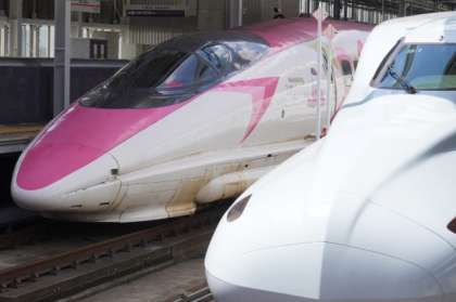 写真上:隣のホームにキティちゃん新幹線が停まっていました。