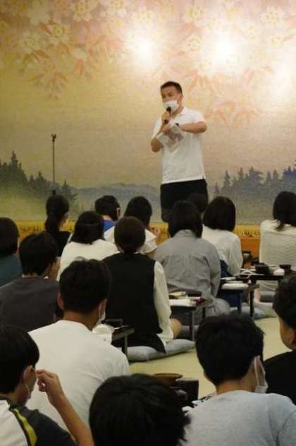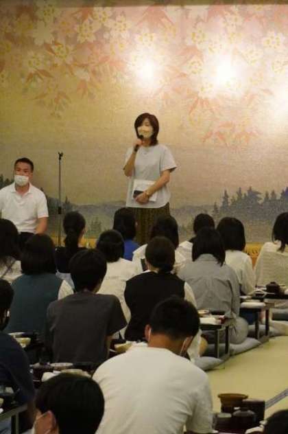 写真下:学年主任の先生から
