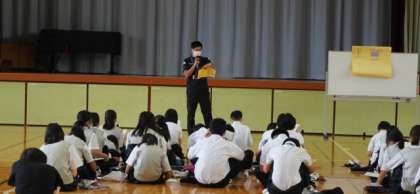 1年生は3校時、学年集会を開きました。