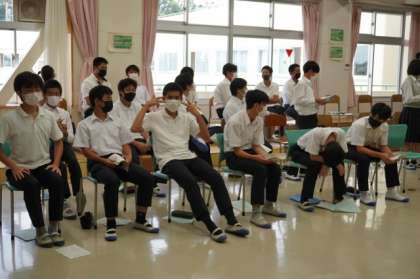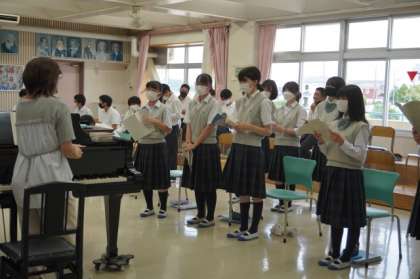 写真中・下:3年3組 音楽「合唱祭の自由曲の練習」