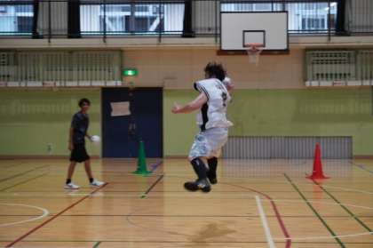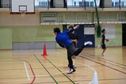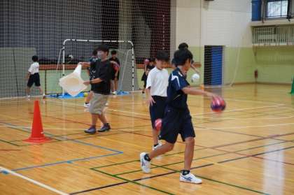 今日は「おやじの会」とハンドボール部との対戦です。