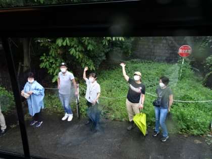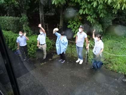 保護者の方や先生方に見送られて、予定より5分早く出発です。