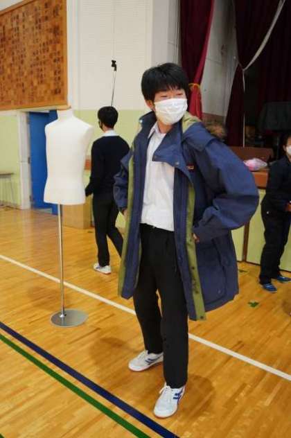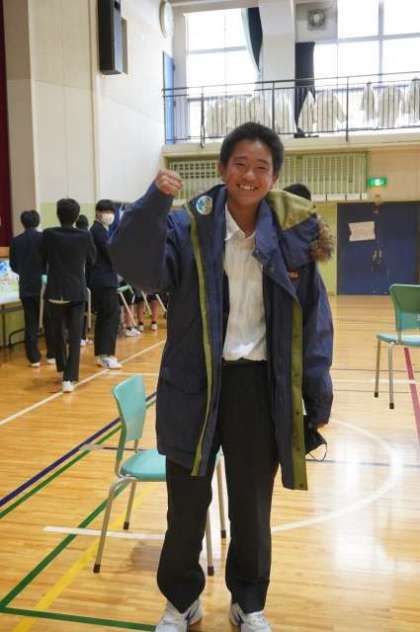 河野さんと一緒に北極点に行ったコートを着させていただきました。