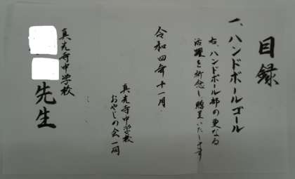「おやじの会」のメンバーの一人が、書道歴35年の方がいて、その方が書いてくださいました。