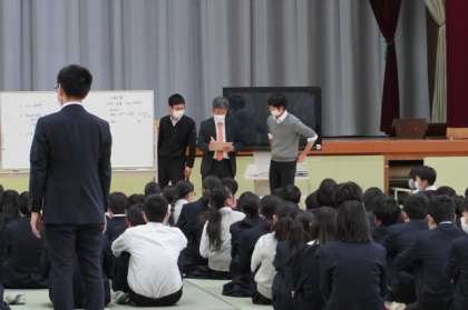 「授業中に校内放送が入ることはない。放送が入ったら緊急です。次に放送の内容を確認してください。普段なら使わない言葉を言います。」等のお話がありました。