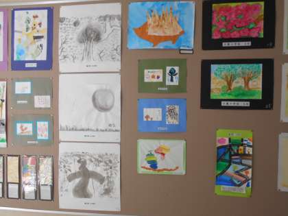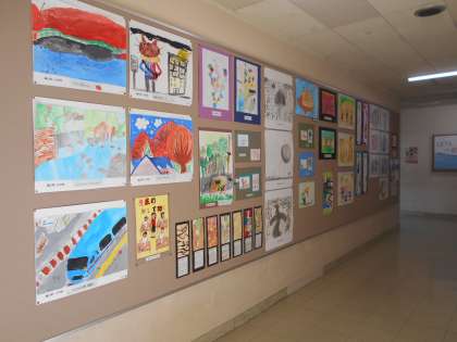 真光寺中でも3階の廊下に小中学生の作品が展示されています。