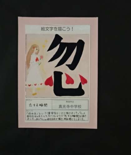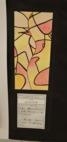 市内のいろいろなお店に真光寺中学校の生徒の作品が展示されています。
