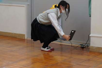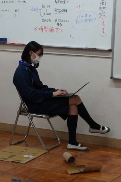 演劇部は多目的室で活動中。
