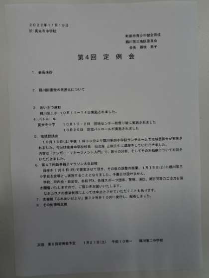 「町田市青少年健全育成鶴川第3地区委員会」が開催されました。