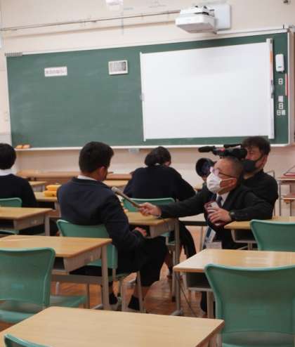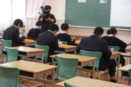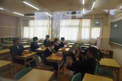取材に応じてくれた生徒たちは、学習室で給食を食べてインタビューを受けていました。