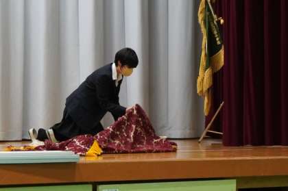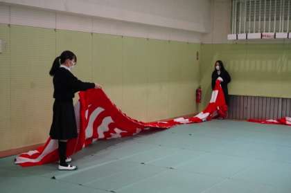 紅白幕は、きれいに畳まないと、次に使う時にしわになっていて、アイロンをかけなくてはならないので、気をつかいます。