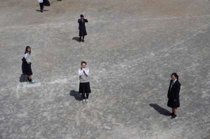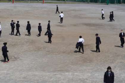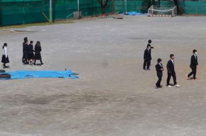 昼休み、元気に校庭を走り回っている生徒たちです。