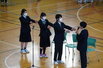 一斉委員会の各委員会の仕事について、昨年度後期の委員の人たちから説明がありました。