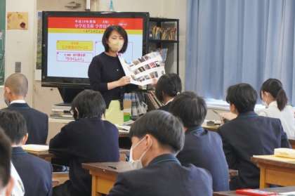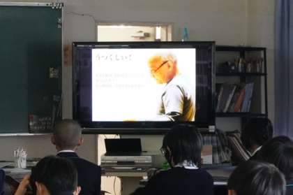 教科書にある詩「うつくしい」(谷川俊太郎)の朗読を聞きました。