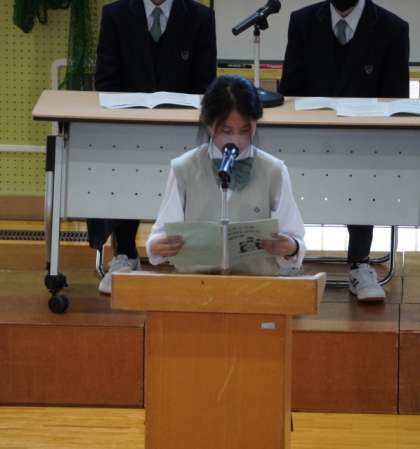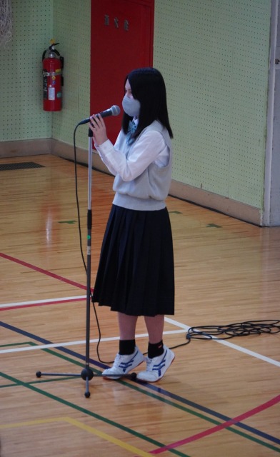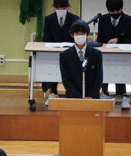 写真上:生徒会本部の活動方針に質問するクラス代表