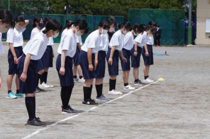 ホイッスルで、スタートラインにたち、挨拶。
