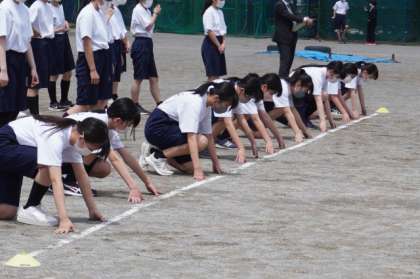 次は、クラウチングスタートの練習です。