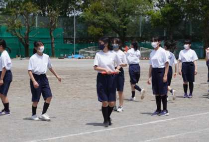 次は、2人でバトンを渡すのをもう2人が見て、アドバイスを伝え合います。