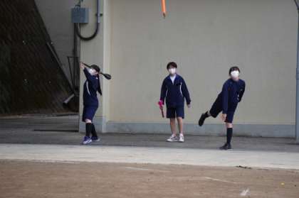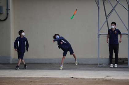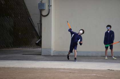 バスケットコートでは、ジャベリックスローの練習をしていました。