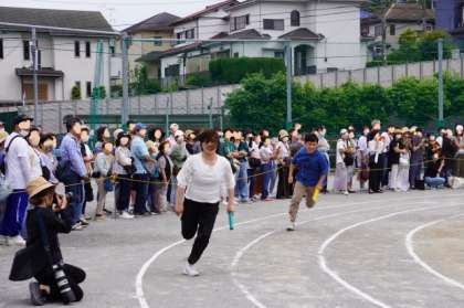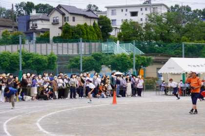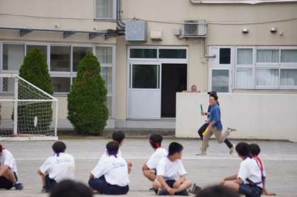「おやじの会」の1走は、インターシップの先生と、昨年度まで教職員大学院生で真中で実習していた先生です。
