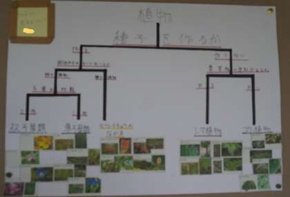 4階1年生フロアの掲示板に「理科の『植物 種子をつくるかな』」のレポートが掲示されています。