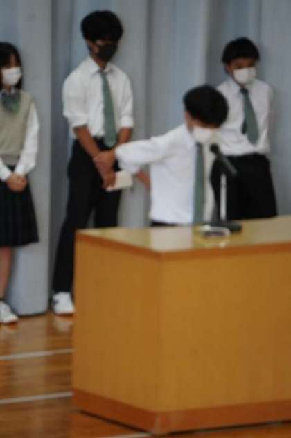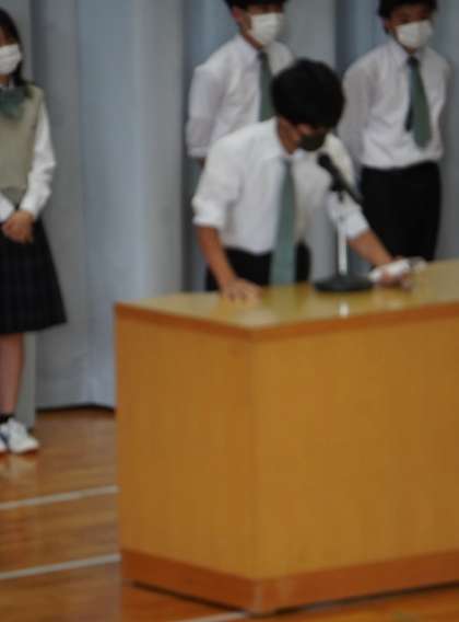 写真下:放送委員会「昼の放送当番を作成しました。来年の体育祭に向けての引き継ぎ事項をまとめました」